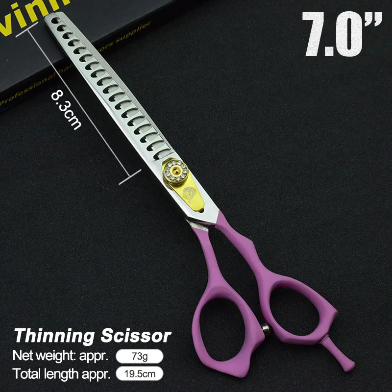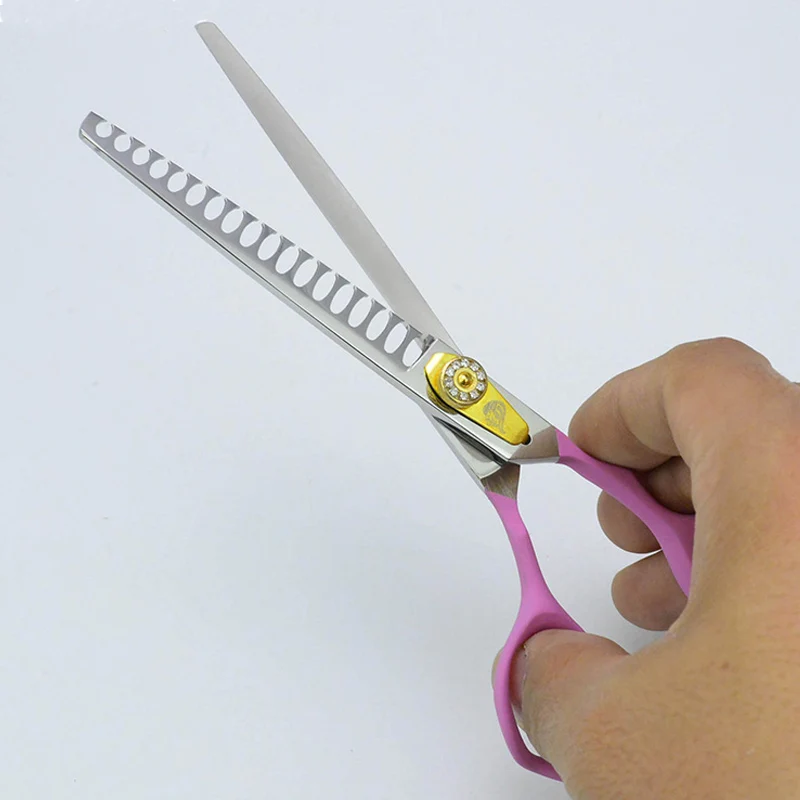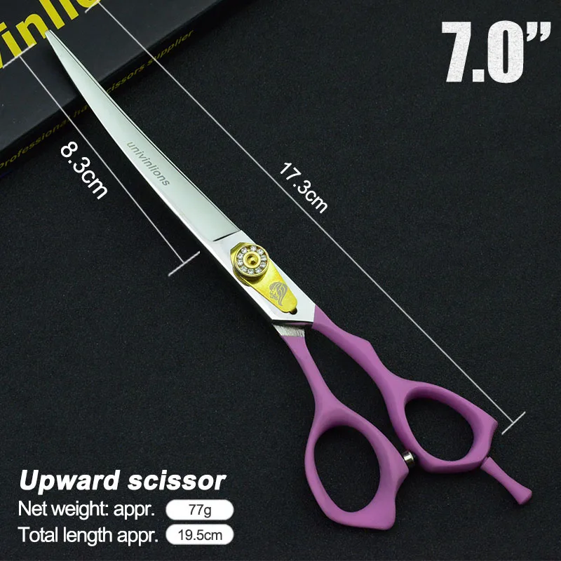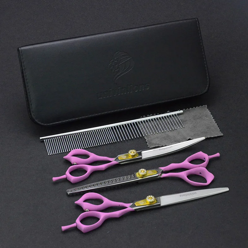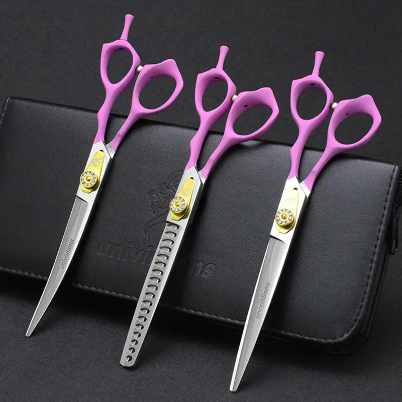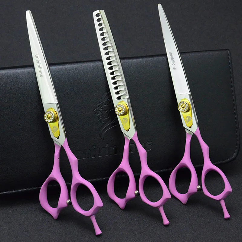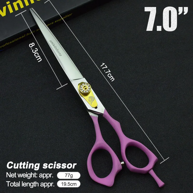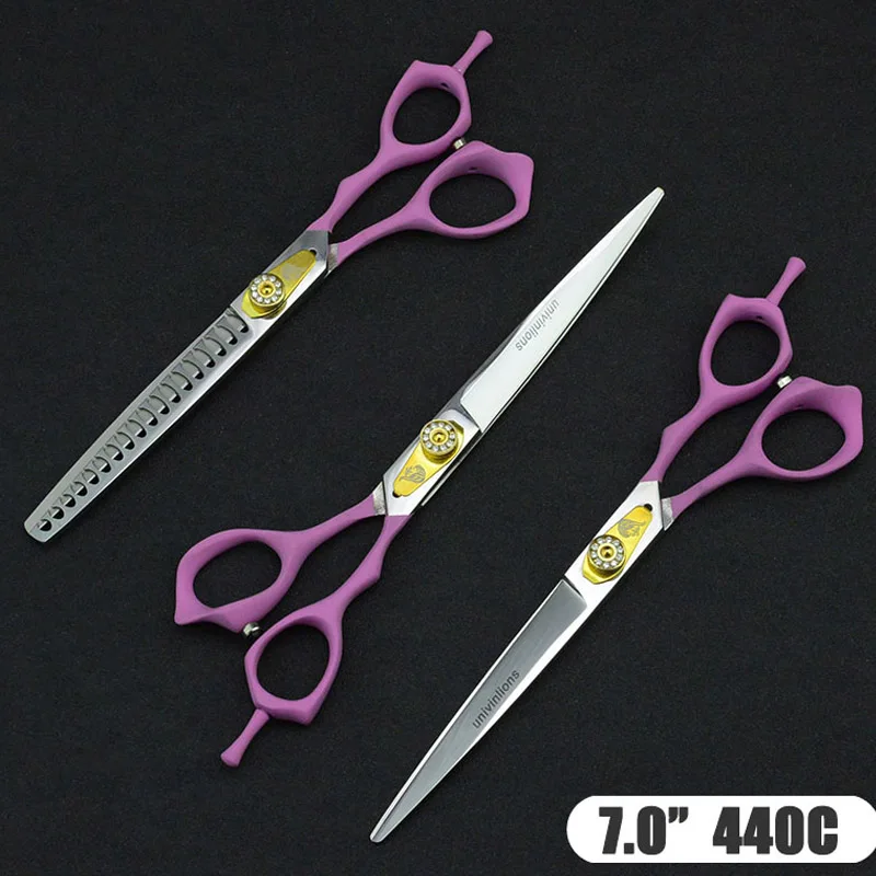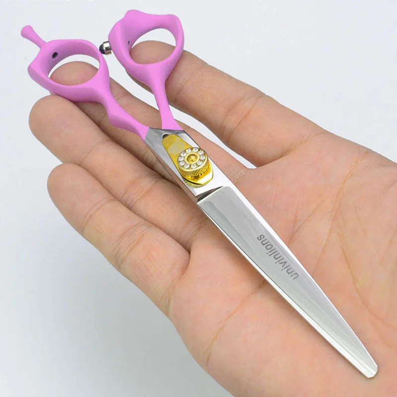 Професійні ножиці 7 дюймів для стрижки хатніх тварин для грумінгу 440С срібло + рожевий Univinlion