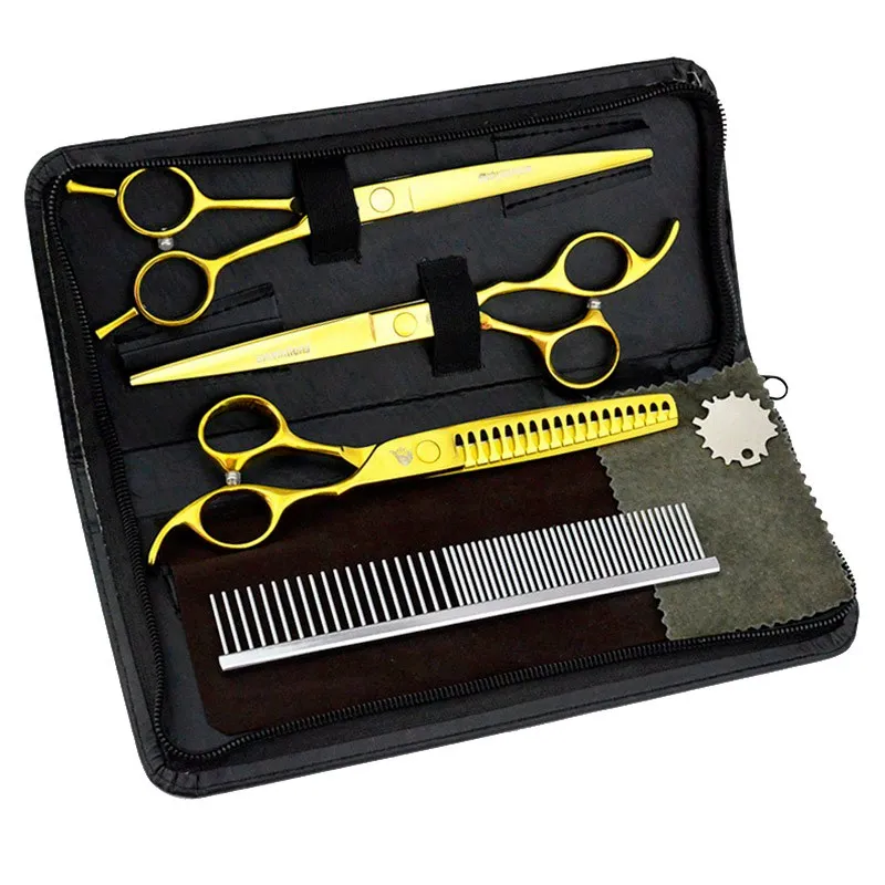 Комплект ножиць 3 шт. 7 дюймів для стрижки хатніх тварин собак кішок для грумінгу Univinlions 7001В наявності