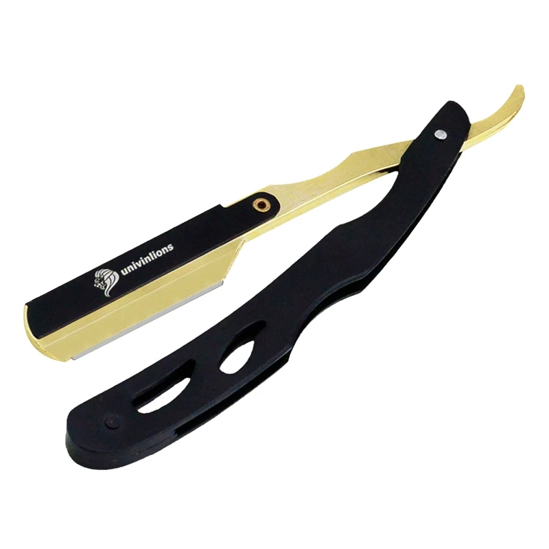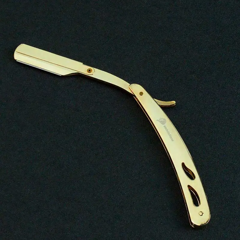 Бритва шаветка + 3 леза металевий складаний ніж для гоління неіржавка сталь Золотий